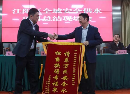 “情系萬民安全水,擔(dān)當(dāng)換得幸福泉?!迸d瀘水務(wù)用兩年半的時間,向江陽區(qū)委交出了滿意的答卷,也向34萬江陽村民奉上了滿意的成果。在1024日舉行的江陽區(qū)全域安全供水總結(jié)會上,興瀘水務(wù)集團黨委書記、董事長張歧從瀘州市副市長、江陽區(qū)委書記付小平手里接過一面鮮紅的錦旗。這既是江陽區(qū)委對興瀘水務(wù)集團工作成果的肯定,也是江陽區(qū)34萬村民共同的心聲!