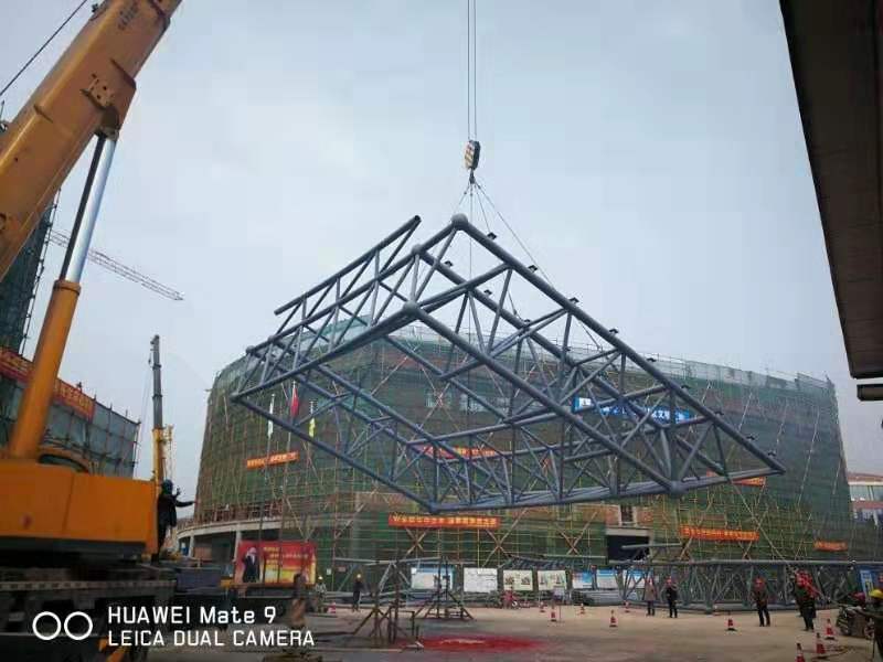 2019311日上午11時(shí)36分,隨著200T大型起重機(jī)的轟鳴,由瀘州興瀘居泰建設(shè)有限公司建設(shè)的瀘職院Ⅱ期室內(nèi)體育館項(xiàng)目第一榀鋼結(jié)構(gòu)屋面桁架,于12時(shí)03分順利著落至設(shè)計(jì)點(diǎn)位。