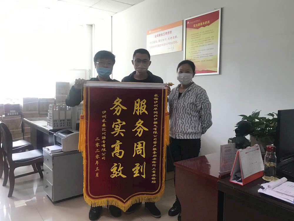 4月24日,瀘州禾森匯川瀝青公司的工作人員專(zhuān)程趕到瀘州華潤(rùn)興瀘燃?xì)庥邢薰究头?,送上了一面“?wù)實(shí)高效服務(wù)周到”的錦旗。