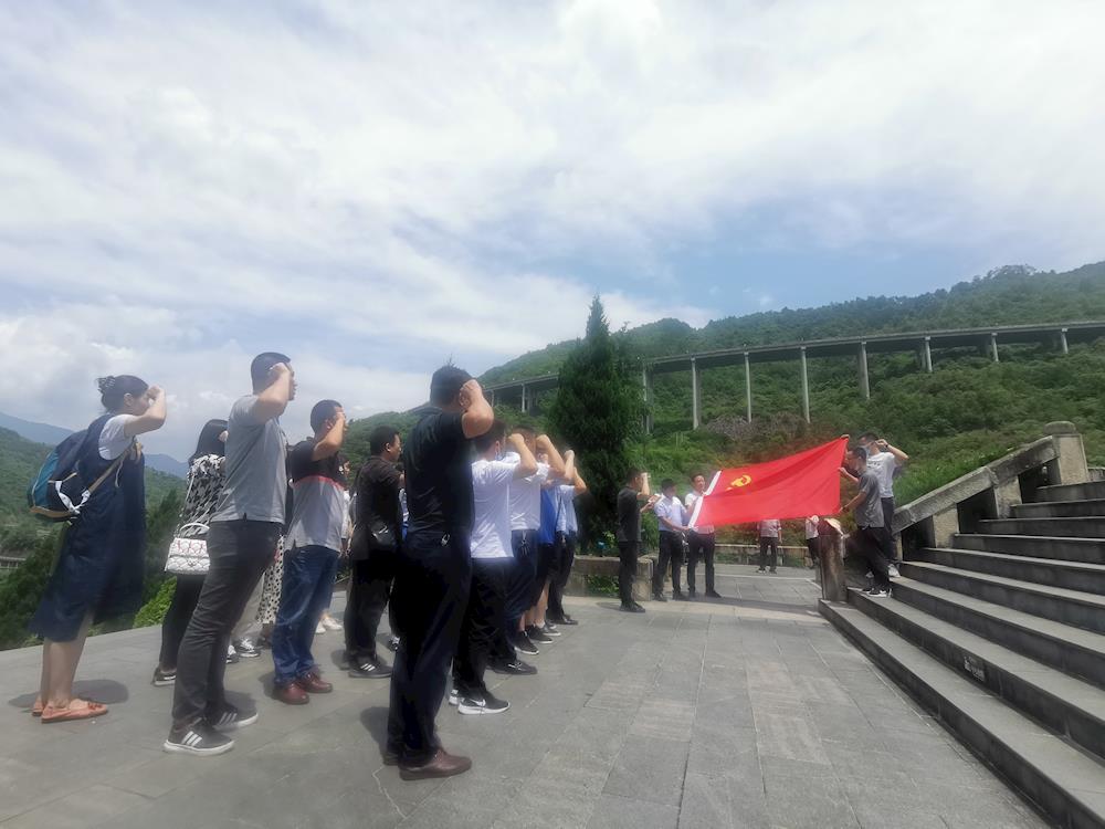 在青杠坡戰(zhàn)斗遺址,全體黨員、入黨積極分子頂著烈日,懷著沉重而嚴(yán)肅的心情參觀了烈士墓和全面反映此次戰(zhàn)役的大型浮雕,向英勇?tīng)奚牧沂總兡?,并重溫了入黨誓詞。